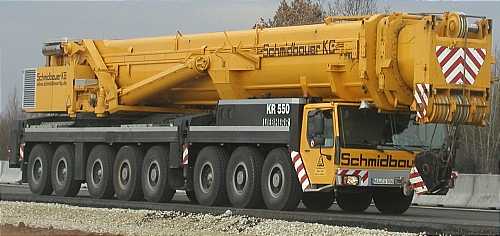 Der LTM 1500 in Fahrtstellung nach dem Eintreffen auf der Baustelle.
