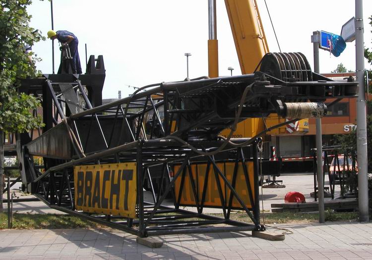 Ein paar Tage später wurde der Kran abgerüstet. Hier wird gerade der zweite Wipplenker für die Demontage vorbereitet.