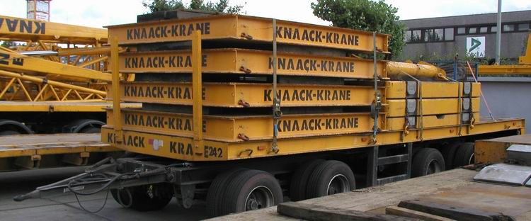 Auf diesem und den nächsten zwei Bildern sind zwei Anhänger mit Zubehör für Krane des Typs LTM 1160/2 zu sehen.