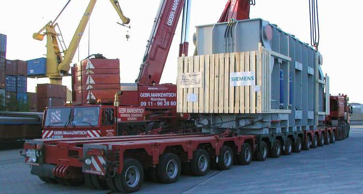 Eingesetzt wurde die Zugmaschine zum Transport eines Trafos zum Nürnberger Schwerlastkai.