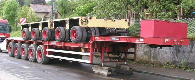 Die Gegengewichte wurden mit diesen Aufliegern transportiert.