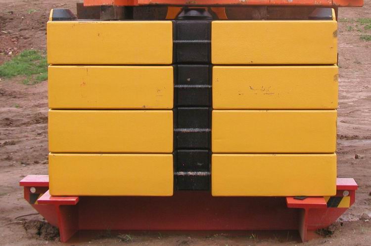 Klötze. Leider ist mir nicht bekannt, von welchem ehemaligen Breuer-Kran diese Gewichte stammen. Es handelt sich hierbei um Demag-Standardklötze aus den 90er Jahren, wie sie unter anderem bei CC 2600 und CC 4800 zum Einsatz kamen.