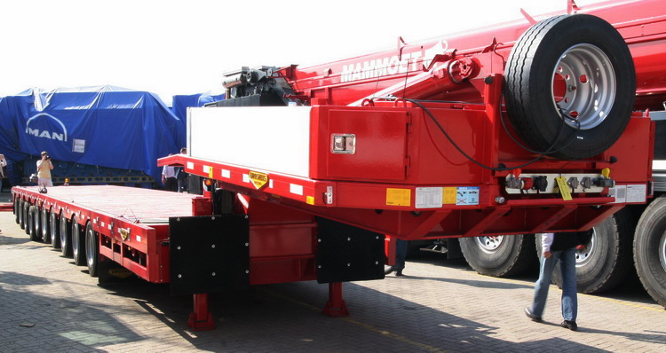 Zum Transport von Kranteilen werden häufig Semiauflieger eingesetzt.