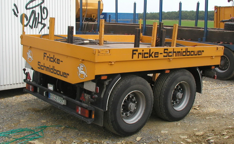 Im Gegensatz zu den Aufliegern ist der Anhänger in gelber Farbe lackiert.
