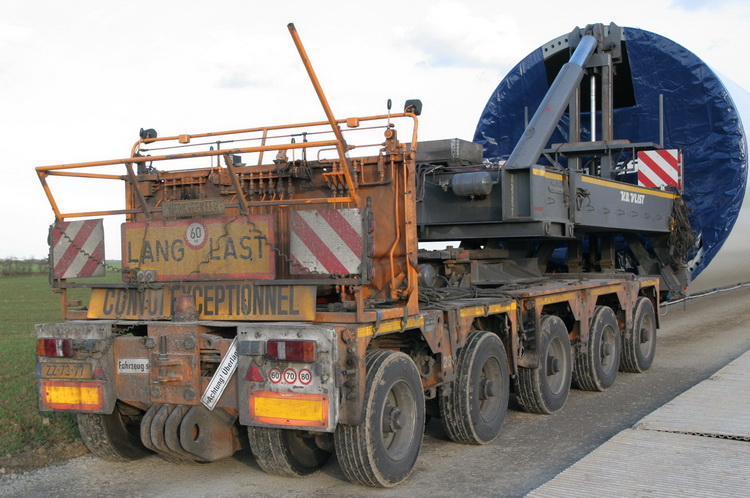 Um das Turmsegment transportieren zu können, wurde der Auflieger zweifach austeleskopiert .