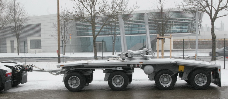 Der vierachsige Nachläufer hatte das zweite Teil der Haltevorrichtung montiert.