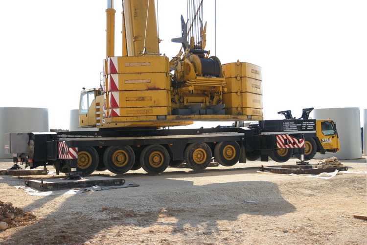 Mit dem 400-Tonner erfolgte die Vormontage der Türme.
