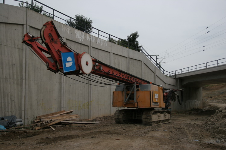 Diese Kombination stand in Kitzingen an der Baustelle für eine Umgehungsstraße.