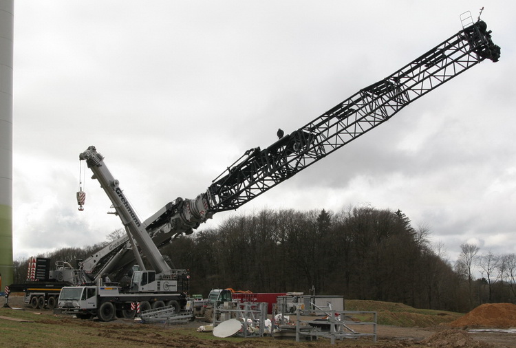 Der Kran wurde mit dem 100 Meter langen Teleskopausleger eingesetzt.
