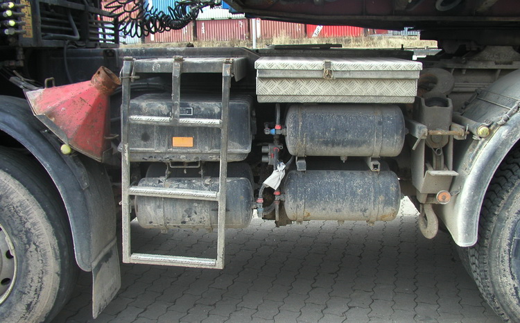 Neben den Luftkesseln und dem Batteriekasten ist auch noch Platz für die Kranhaken zwischen den Achsen vorhanden.