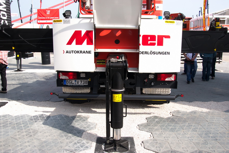 Die hintere Stütze lässt sich hochklappen und einschieben. Die seitliche Abstützbasis liegt bei 10,4 Metern.