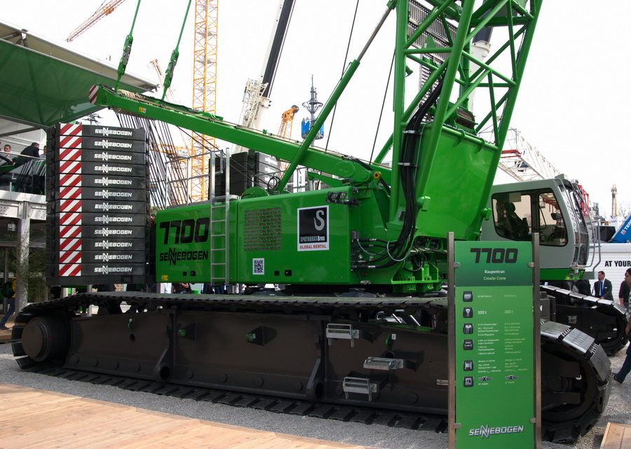 Der Sennebogen 7700 hebt bis zu 300 Tonnen. Für einen stabilen Stand sorgen 185 Tonnen auf dem Oberwagen und 40 Tonnen Zentralballast.