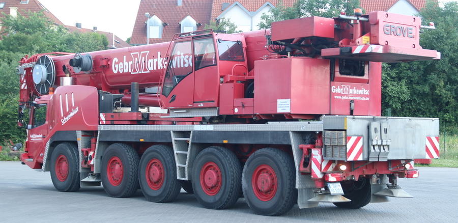 Die maximale Tragkraft des Mobilbaukrans beträgt 8 Tonnen.
