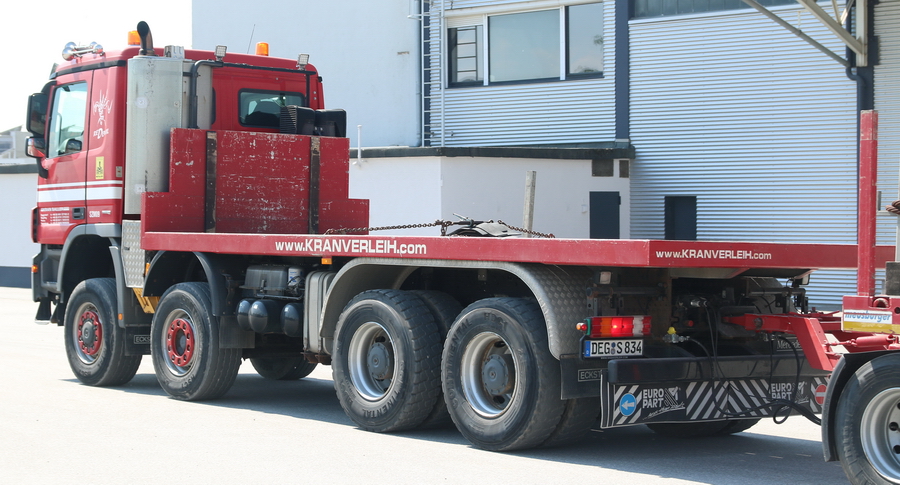 Der vierachsige Actros MPIII 4155 8x6 ist mit einer Registerkupplung an der Front ausgestattet.