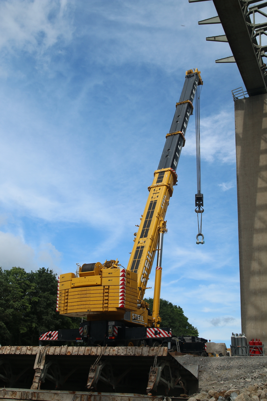 Mit dem LTM 1500-8.1 von Steil befand sich neben dem Demag AC 500-8 von MSG ein weiterer 500-Tonner an der Brückenbaustelle in Kürnach.