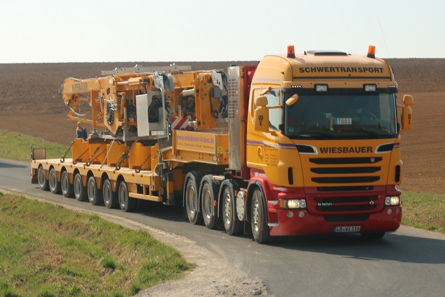 Dieser hatte ebenfalls einen siebenachsigen Faymonville-Auflieger aufgesattelt.