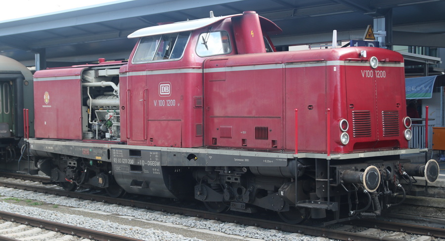 Ebenfalls vom Eisenbahnmuseum Würzburg stammte die Diesellok V100.