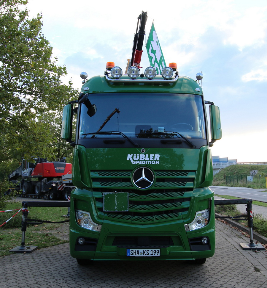 Auf dem Scheuerle Auflieger befand sich ein Umschlaggerät.