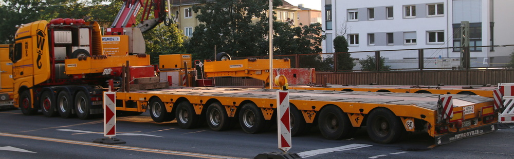 Aufgesattelt hatte die Zugmaschine einen siebenachsigen Semiauflieger.
